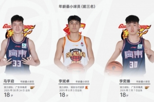 其中,本赛季最年轻的三名球员分别为马宇启(广东)、李斌卓(深圳)和李奕臻(广东),三人同为18岁。