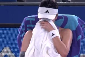 直播吧10月06日讯 武汉网球公开赛女单首轮,王欣瑜0-2负于日本选手内岛萌夏,止步女单首轮。比赛中王欣瑜接受腰部医疗暂停,一度难以控制情绪,用毛巾捂住面部落泪。