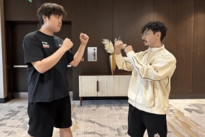 直播吧10月16日讯 BLG与G2下场比赛相遇,G2晒Bin与BrokenBlade合照: