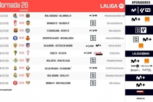 直播吧1月30日讯 西甲官方公布了西甲第26轮的赛程安排,其中皇马VS塞维利亚的时间为北京时间2月26日凌晨4点,巴萨VS赫塔费的时间为背景时间2月24日晚上11点15分。