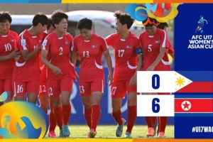 直播吧5月10日讯 U17女足亚洲杯A组结束第二轮争夺,朝鲜队6-0大胜菲律宾,取得两连胜提前晋级半决赛。