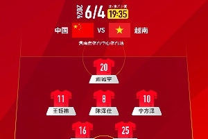 直播吧6月4日讯 北京时间19点35分,2024“丝绸之路·华山杯”渭南国际足球邀请赛,中国U19vs越南U19,赛前双方首发出炉!
