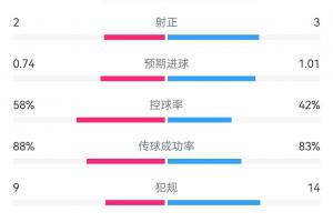 西班牙vs法国全场数据:射门6-9,射正2-3,控球率58%-42%