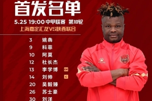 上海嘉定汇龙VS陕西联合月亮泊首发:科菲解禁复出,朱宝杰首发
