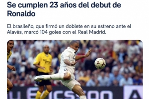 2002年10月6日,在伯纳乌对阵阿拉维斯的比赛中,罗纳尔多替补登场仅一分钟便取得进球,并最终以梅开二度的表现开启了他的皇马生涯。