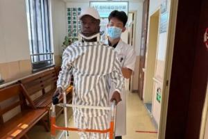 直播吧10月13日讯 据广西足球博主“耀武酒肆工作室”晒照,阿萨莫阿在助行器辅助下,可以下床行走。