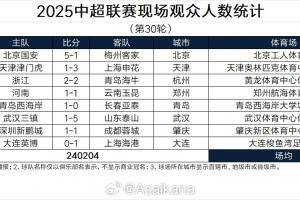 2025中超联赛现场观众人数统计(第30轮)