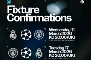 直播吧2月27日讯 欧冠1/8决赛,皇马对阵曼城,两回合比赛开球时间已经确定。